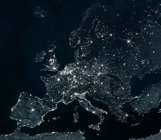 L’Europe de nuit vue de l’espace (source SPL / Barcroft Media)